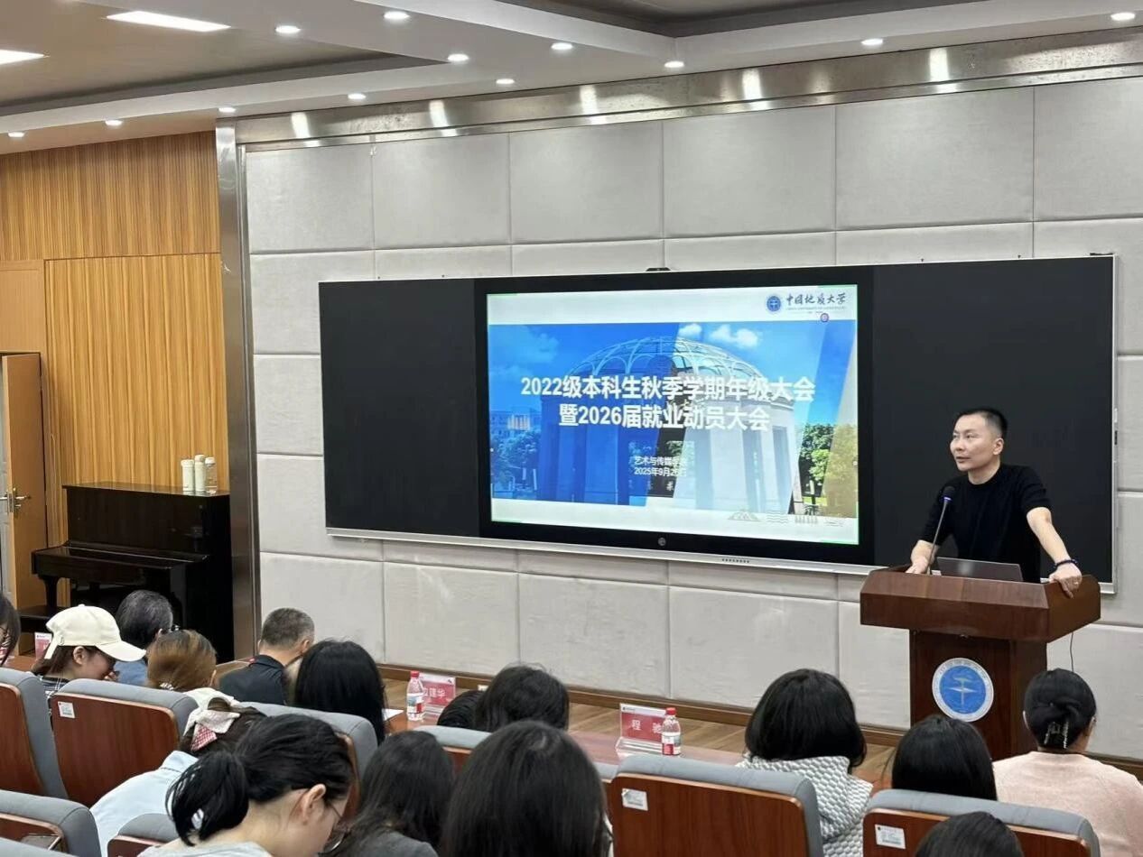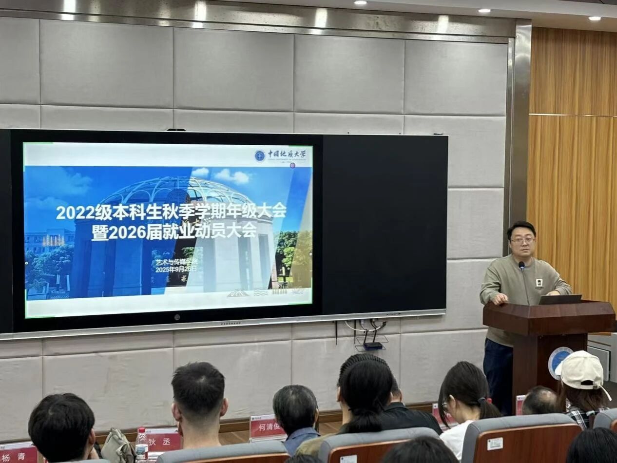 9月26日上午,亚洲第一黄色网站2022级年级大会暨就业动员大会在艺媒楼1114报告厅举行。院长何清俊,党委副书记边建华,视觉与媒体设计系系主任狄丞,环境设计系系主任李待宾,环境设计系系副主任程驰,音乐系系副主任杨青,新闻传播系专业教师、2026届毕业班班主任李静,学工组专职辅导员曾戈晖,兼职辅导员黄灿以及2022级全体学生参加本次大会。此次年级大会由辅导员曾戈晖主持,聚焦2022级本科生关切的最新考研政策、毕业发展规划指导两大核心议题,为同学们搭建起清晰的成长指引平台。