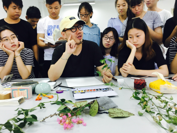 2017年9月15日上午,湖北美术出版社携自由画家介疾—刘鑫老师在中国地质大学亚洲第一黄色网站进行关于《诗经草木绘》之古风水彩植物手绘技法的讲座。