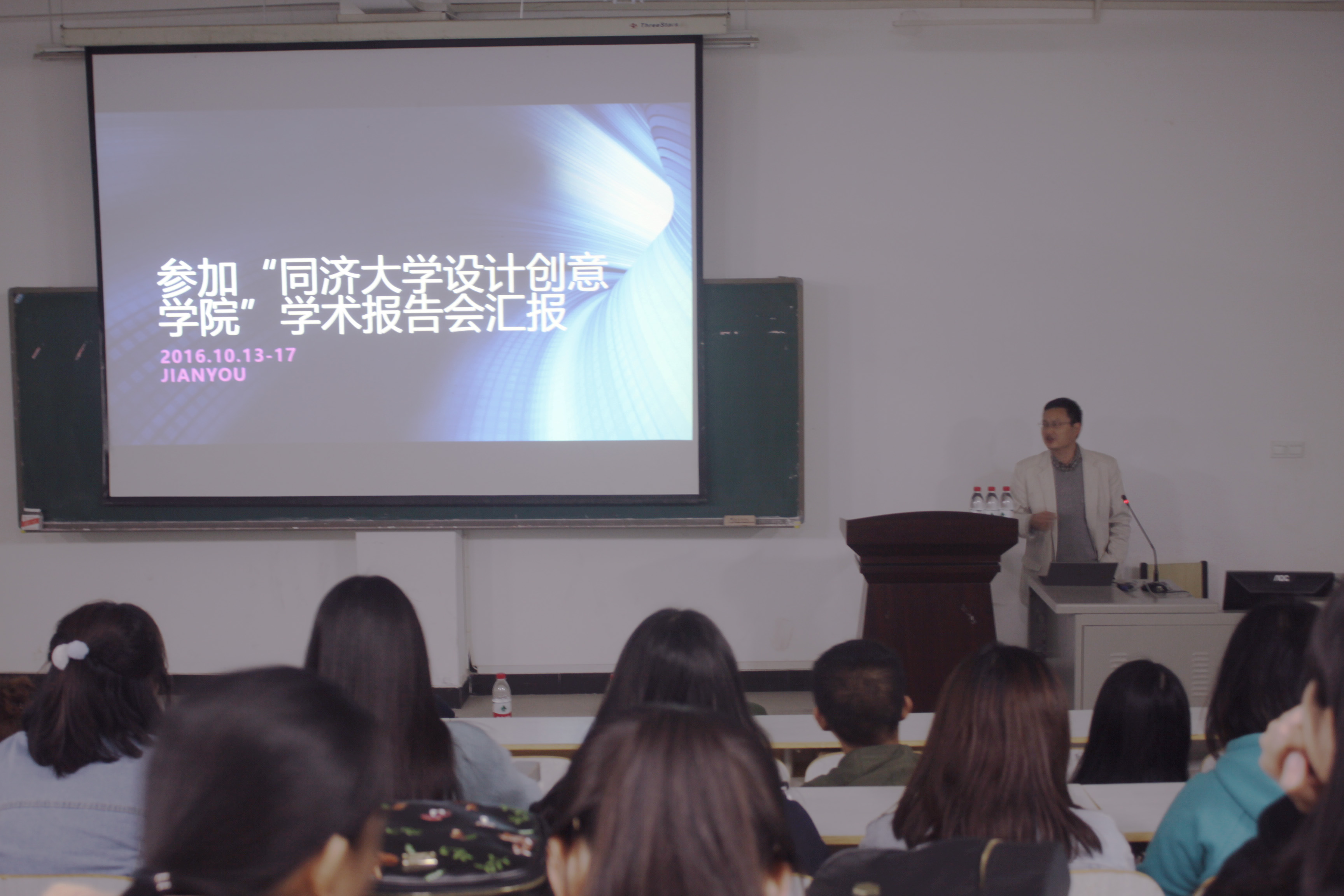 汇报开始,曾副院长首先向同学们介绍了“设计X复杂性(Design in Complexity)”主题学术报告会的过程。然后,借助一张张现场照片讲述了自己参会的情况。最后,曾副院长结合同济大学创意学院和我院的相似与差异之处分享了自己的收获,他指出作为一名老师应该提升科研能力,作为一名管理者应该配合院长管好本职工作,作为一名从事设计教育的工作者应当借力本校兄弟学院的优势学科凝练我院的专业特色。