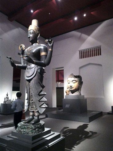 位于大皇宫附近的曼谷国家博物馆是东南亚地区规模最大的国家级博物馆之一,其建于1782年,1887年移至现今的场所。包括了18世纪的皇宫,与完整的传统泰国建筑、宅邸,收藏泰国从史前时期至现代的文物珍宝。馆内分多个部分,陈列着泰国重要的历史文物,如班清文化出土的文物、叻武里府女子古乐队的灰塑、西维差时期的指地印那伽光背佛像、有“泰国维纳斯”之称的阿瓦罗甘旦舜菩萨像、素可泰的著名石碑、古代兵器、服饰、乐器、陶瓷、五彩瓷、象牙雕、珠母镶嵌、木偶、御用车辆等。馆内最引人入胜的是素可泰朝代和阿犹地亚时代的各种精致瑰丽的国王御用武器。皇室专用的御用船,亦有模型在馆内陈列,且是主要展品之一。同学们置身其中,仿佛历史的画卷缓缓展开,泰国从古至今的历史娓娓道来,大家对泰国历史及艺术的发展有了极为深刻的印象。