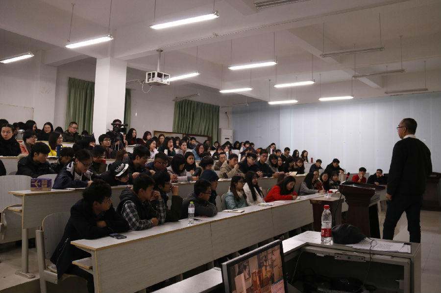 赵冰院长首先向在场师生介绍了国际知名学者季铁男先生及其成就。随后季铁男先生开始讲解现象学哲学,季先生首先展示了一张有一个“看”字的图片,并表示现象学教我们如何看东西,告诉我们怎样看重要的学问。为了便于同学们理解,季先生在现场与同学们进行了三次互动,季先生将他捡到的废气白色塑料袋为对象,分三次问在场学生他们看到了什么,对于“垃圾”、“客观物体”、“塑料袋”等回答,季先生现场也做出相应回应与解释,并表示设计专业涉及很多实际的问题,而不同年龄的人看到的也不一样,鼓励同学们多练习如何看。