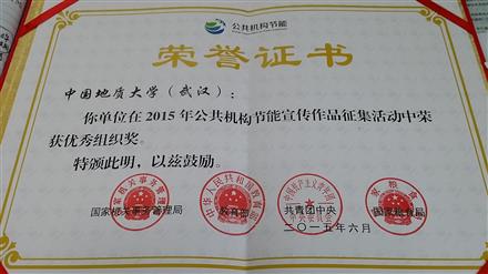 我院代表学校参加2015年公共机构节能宣传作品征集活动,获评“优秀组织奖”,研究生陈广榕、魏小嘉的作品《Earth and Eyes》获得视频类高校组三等奖。本届大赛由由国家机关事务管理局、教育部、团中央、国家粮食局联合举办,涉及节水、节电、节粮以及节能环保等主题。