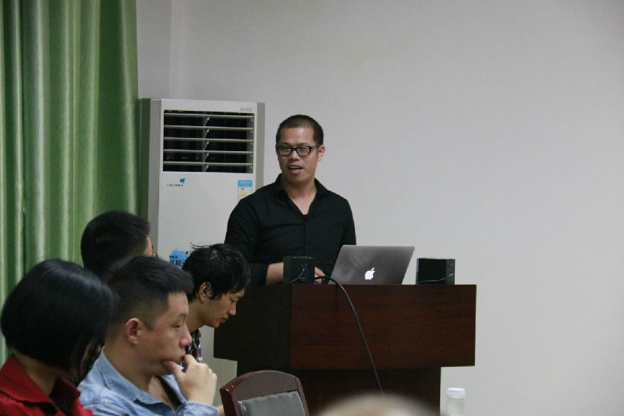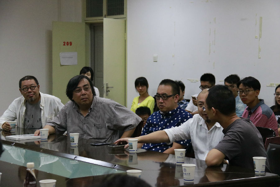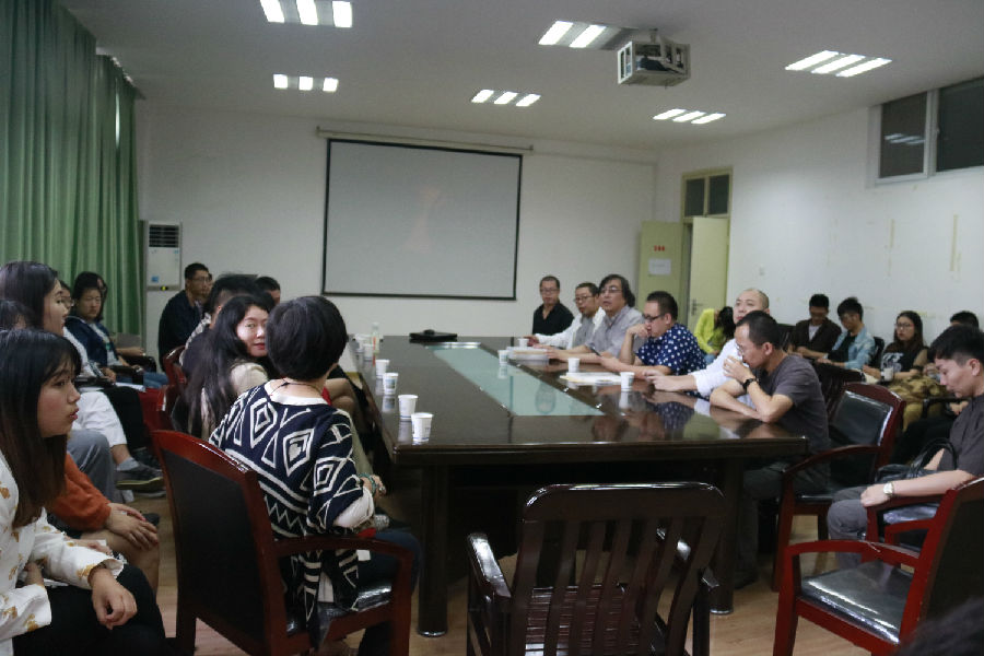 嘉宾孔森播放了视频《墨界》作为欣赏案例,并展示大量以扇子为原型的造型图片,孔森表示,通过扇子可以表达心中的善心、善意,能唤起中国的审美和自己的良知。院长赵冰发言表达自己对平面艺术的见解,并和在场其他嘉宾进行互动、探讨。