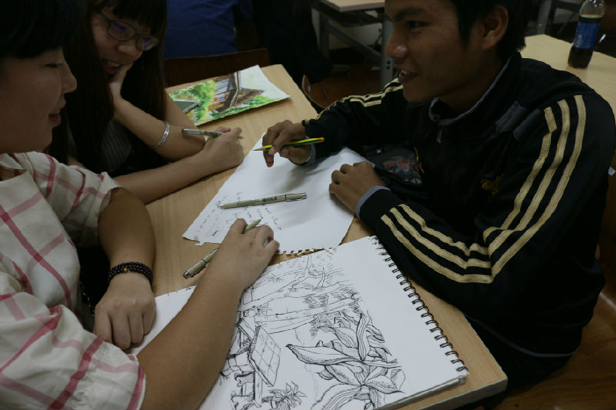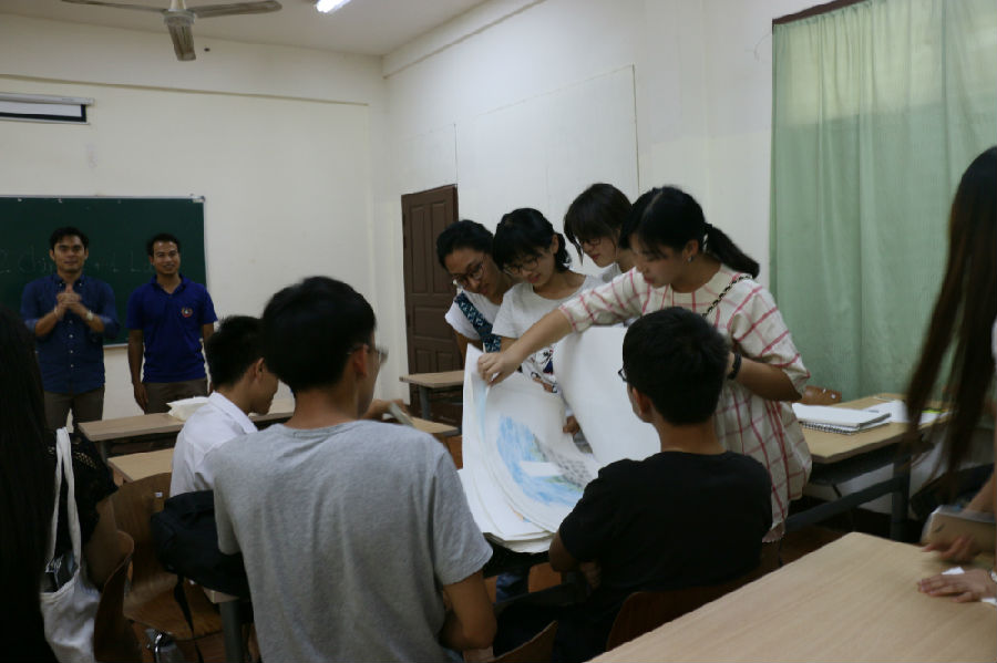 九月九日,老挝写生组受老挝苏发努冯大学建筑学院邀请前往该校交流,交流活动主要包括:首先,写生组教师为建筑学院师生进行专业讲座,以写生组同学作品为例介绍我院艺术教育的教学思路和认识方法,其次,建筑学院教师陪同写生组师生参观学院教学设施及环境,最后建筑学院同学与写生组同学分组交流。