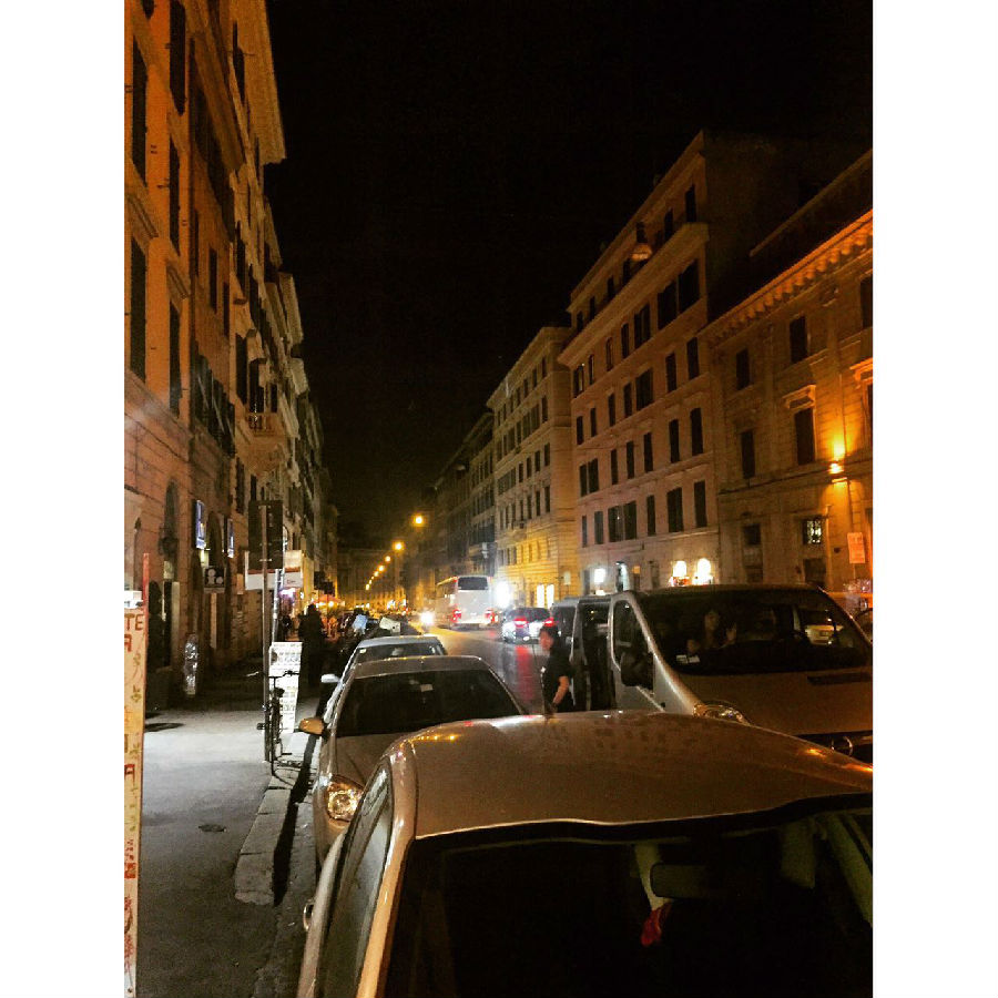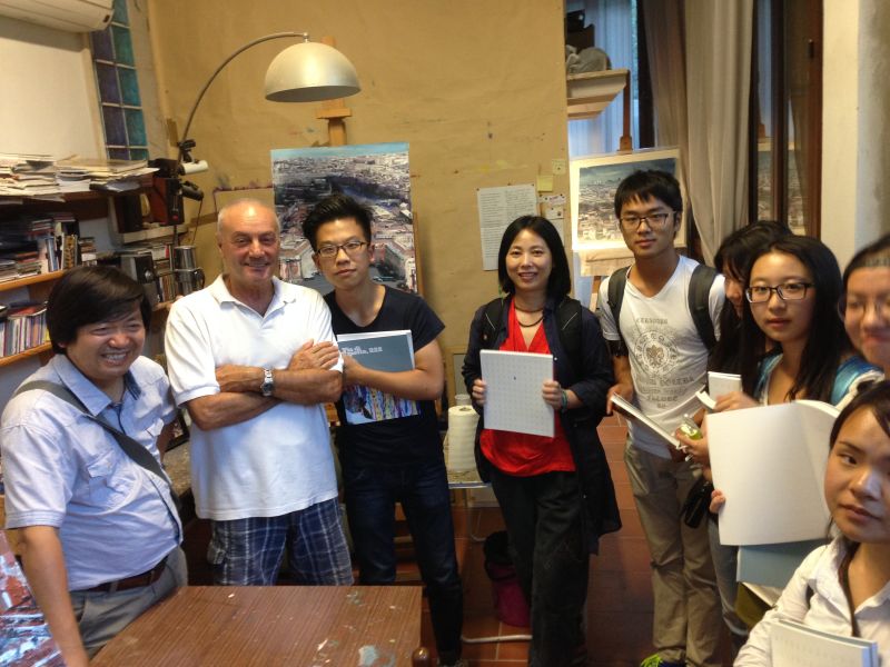 在阿雷佐的考察完毕后,应斯波莱托美术学校教授比尼的热情邀请,访问他在特里镇的工作室。比尼专心于城市风光的描绘,在武汉与上海分别举办过个展。临别他赠送给每位同学一本他的作品集。晚上十点抵达此次意大利之行的最后一站——罗马。夜色中的古城,文艺复兴和巴洛克风格的建筑,与橘黄色灯光交相辉映,透露着远古文明的神秘、尊贵与大气、奢华。