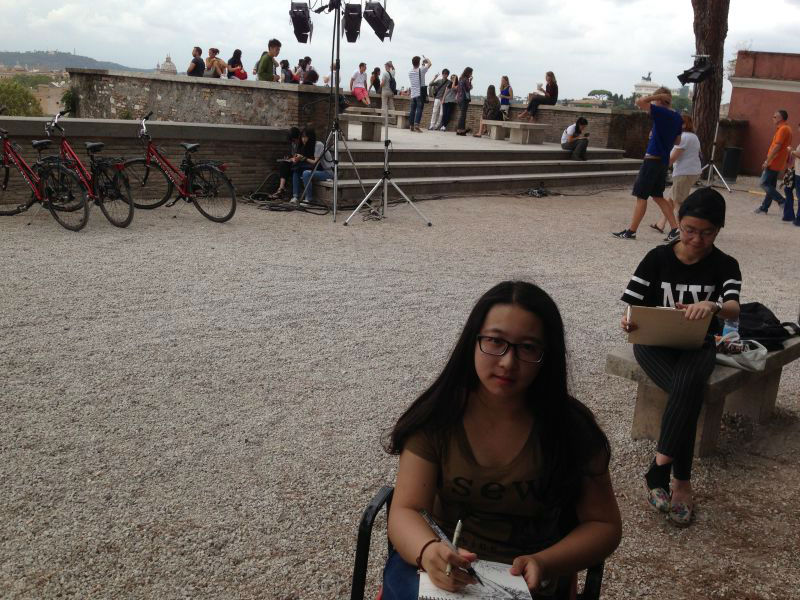 9月4号上午,罗马实习写生小组来到罗马城中可以俯瞰梵蒂冈大教堂的阿维第诺高地,开始风景写生。回国前,将在罗马举办意大利师生写生展。