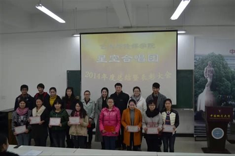 2015年1月17日上午,亚洲第一黄色网站召开星空合唱团建团以来第一次总结表彰大会。总结大会以赵冰院长对合唱团的寄语“立足地大,仰望星空”为主题来进行。星空合唱团的声部长及副团长代表各自声部,对合唱训练、演出以及团队建设方面进行工作总结。音乐表演系主任兼星空合唱团团长张理副教授对音乐艺术学习提出了中肯的建议。