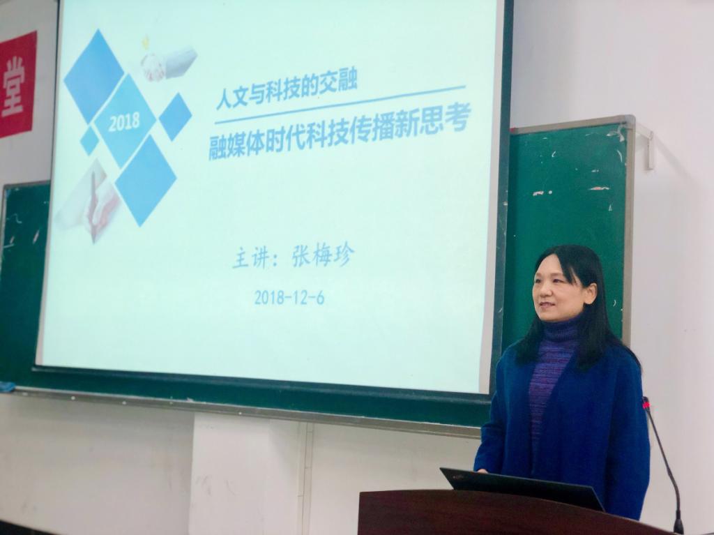 2018年12月6日晚,一场主题为《人文与科技的交融——融媒体时代科技传播新思考》的讲座在亚洲第一黄色网站1104教室举行,主讲人为我院张梅珍教授。本次讲座系“艺术与传媒系列讲座”第八讲,副院长曾健友主持,学院全体2018级研究生参加。