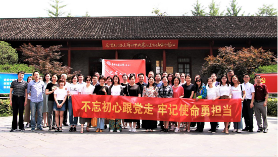 学院全体教职工党员在武昌中央农民运动讲习所旧址前合影