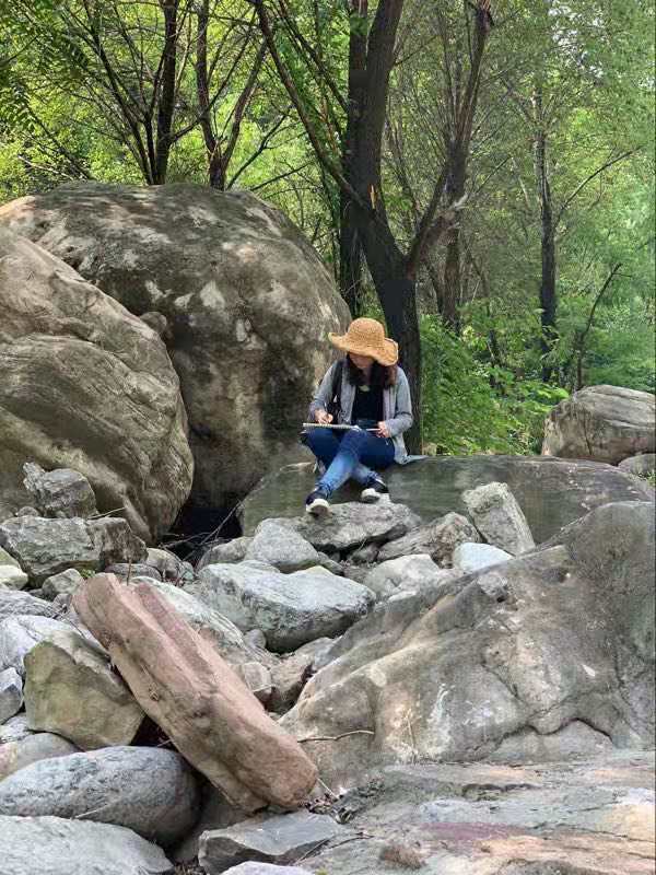 两天的时间游览了太行屋脊、桃花谷、王相岩,感受了北方山谷的峰峦重叠和大自然的力量,大家被大自然的创作所深深吸引,唐代画家张璪说“外师造化,中得心源”。同学们支起画架,将自己对于大自然的敬畏与热爱浓缩在手中的画笔上,在画布上激情创作。
