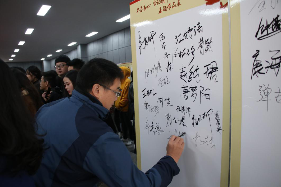 (通讯员王石磊)11月18日上午11时,“不忘初心 牢记使命 献礼新中国70华诞”主题作品展开幕式在东区教学综合楼一楼展厅顺利举行。600余名师生齐聚东区综合教学楼,一起接受思想与艺术的洗礼。