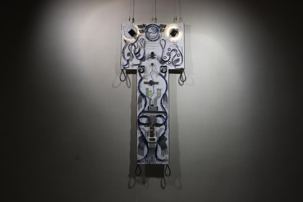《AFTER LIFE》:作者利用现代的机械元素重构了马王堆T形帛画,如果去掉视觉的感知方式,使用触觉和听觉感受帛画会出现怎样的情形?该作品以构成元素的转换探寻荆楚大地的文化内核。