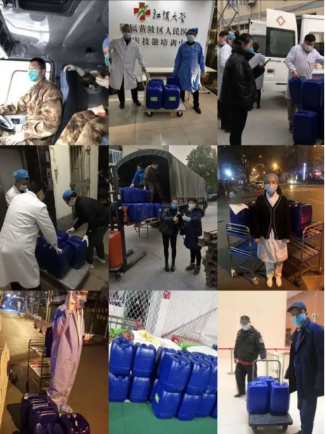 志愿者运送捐赠酒精