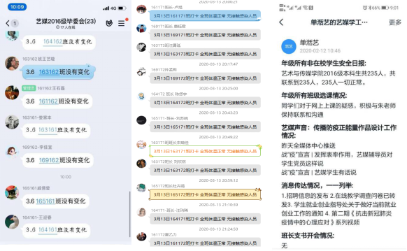 守护安全健康底线,建立稳固顺畅联系网络。学院学工组在疫情爆发之初,迅速建立学工组—班级安全负责人—班级学生的三级联络机制,同时配套了辅导员—年级学生骨干—年级学生,辅导员—年级重点关注对象—年级重点关注对象联络人两条辅助沟通渠道。完善每一个学生的通讯录和紧急联系人通讯录,确保随时需要随时联系。坚决落实每日健康打卡制度,各年级辅导员全面了解疫情期间学生们的身心健康、学习状态及思想状况,重点关注港澳学生群体、留校学生群体、出国出境学生群体、疫情严重地区学生群体,并且做好工作台账,每日小汇报,每周大总结。辅导员、班主任、学务指导老师深入了解学生情况,学工组全体成员24小时待命,及时处理突发情况,动态跟进,站好疫时安全岗。