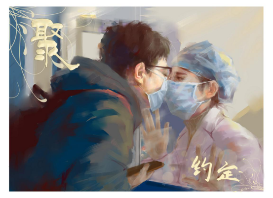 (设计说明:这副作品通过明暗、色彩饱和度对比来突出了医生与病毒之间的抗争。左下角代表祖国的大好河山,医生用脚步走遍且不间断的前行,不问归期。而在画面上方是黑暗的病毒,医生的到来燃起生命的光芒,驱赶着这些病毒…这副作品表达了对医务人员的赞叹和暗示他们的光明前程。)