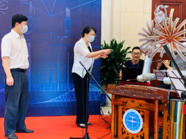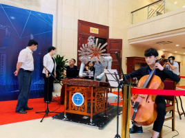 2020年全国科技活动周闭幕式是疫后湖北省承接的第一个全国性大型活动,海百合音乐机器人在闭幕式上,与乐队圆满完成近40分钟的人机交互演奏,受到了参会嘉宾的关注和赞誉。湖北省副省长肖菊华、省科技厅厅长王炜驻足观看演奏,并与团队成员进行了亲切的沟通和交流。