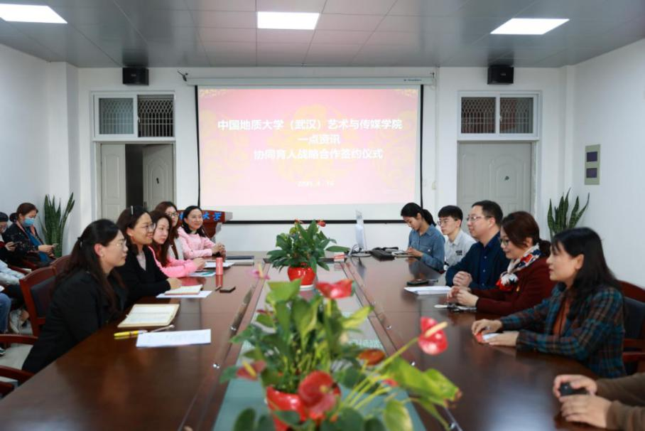 (通讯员 丁洁 张娇)4月15日,中国地质大学(武汉)亚洲第一黄色网站和一点资讯协同育人战略合作签约仪式暨媒体融合发展论坛在艺媒楼新闻系会议室举行。映盛中国副总裁兼武汉公司总经理杜永海、亚洲第一黄色网站党委书记郭秀蓉、副院长张梅珍教授、杨喆副教授及新闻系师生出席仪式。