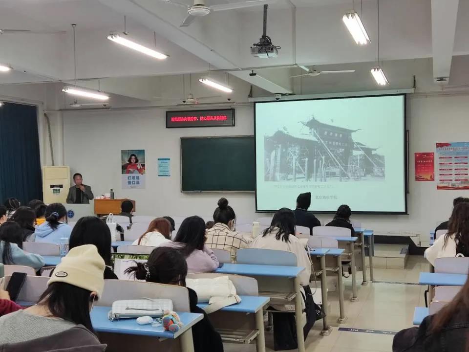 此次讲座,刘宇老师分别从“北京八大院,惊天动地”、三易校名‘四重门’”等方面展开校史的讲述。讲座伊始,刘宇老师向同学们给介绍了新中国院系调整的首选目标,学习借鉴苏联的教育模式到“北京八大院”的形成。