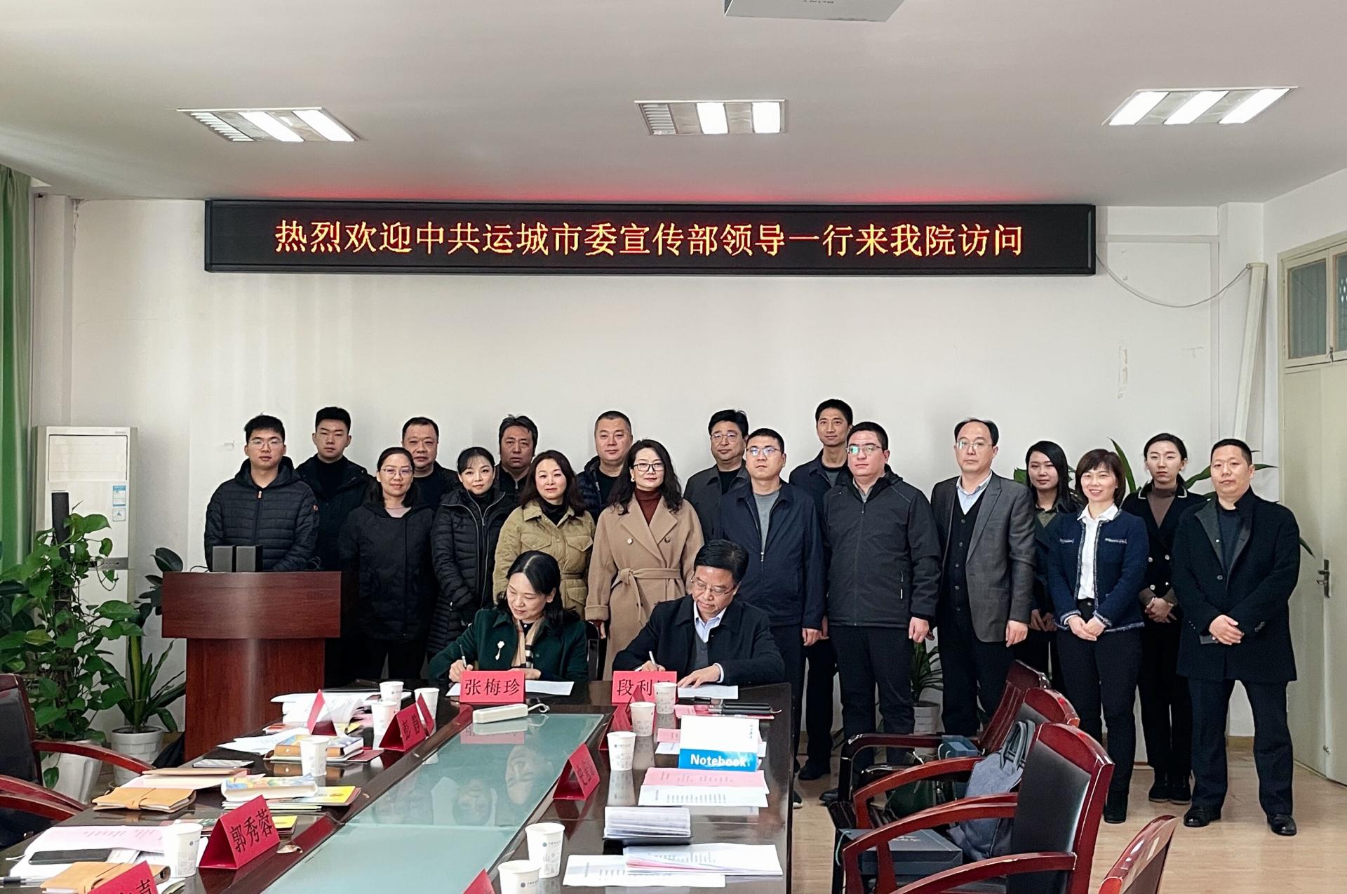 (通讯员 黄天佑 边建华)2021年12月21日上午9:30,亚洲第一黄色网站1209会议室,我院与中共运城市委宣传部召开座谈会,并签署了地校战略合作协议。出席本次座谈会的主要领导有运城市委宣传部二级调研员段利民,亚洲第一黄色网站党委书记郭秀蓉、副院长张梅珍、杨喆、彭静、袁玥,学校党委宣传部副部长吴仁喜等。会议由亚洲第一黄色网站党委副书记边建华主持。