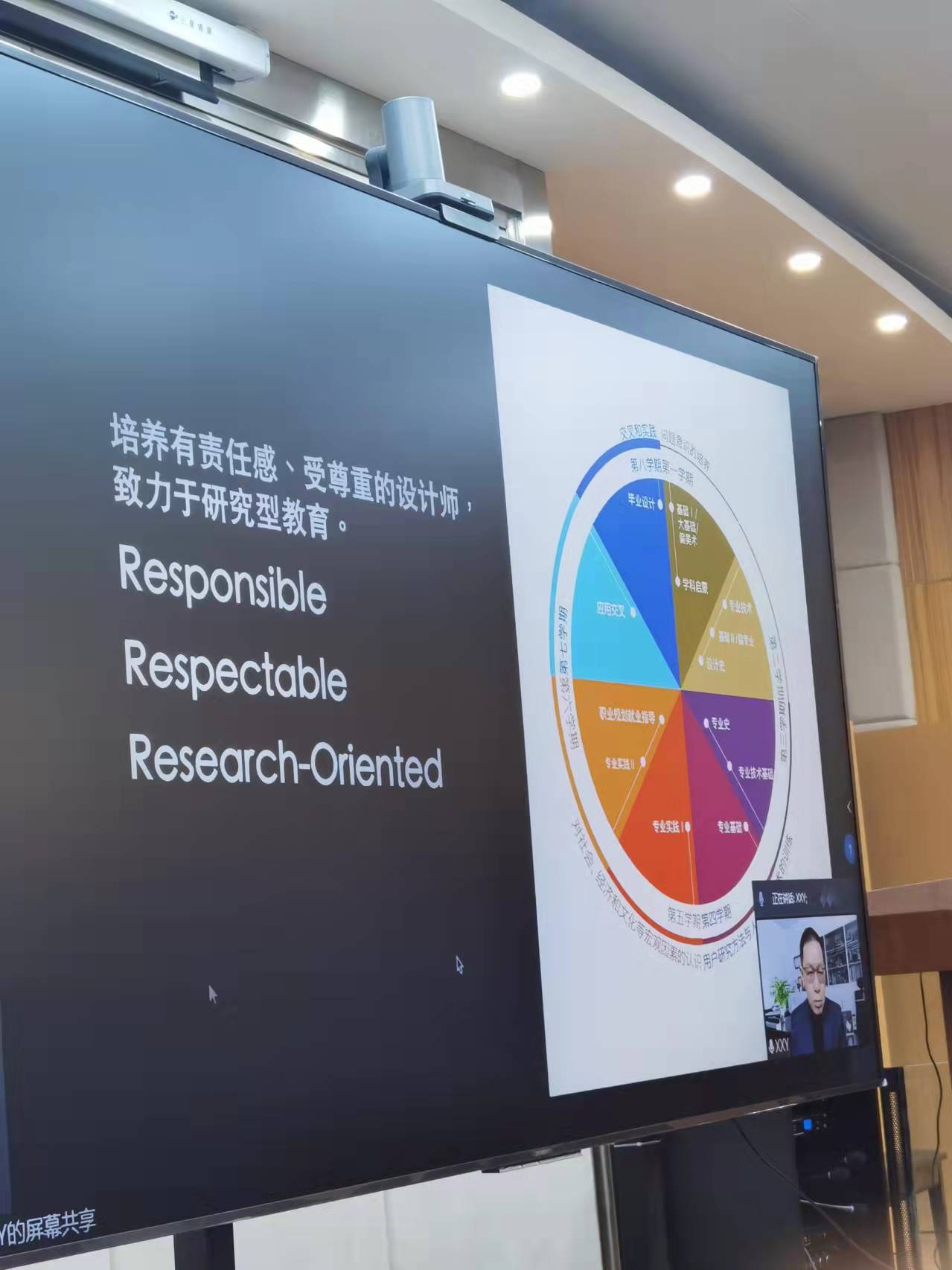 (通讯员  沈艳华)12月28日下午2:00,艺媒学院第五期教师职业能力提升计划专题培训在艺媒学院学术报告厅1104举行,本次培训主题为“新文科建设——教学与科研能力持续更新”,同济大学特聘长聘教授、原江南大学设计学院院长辛向阳教授线上主讲,院长桂宇晖教授主持。学院全体教师及部分学生参加。