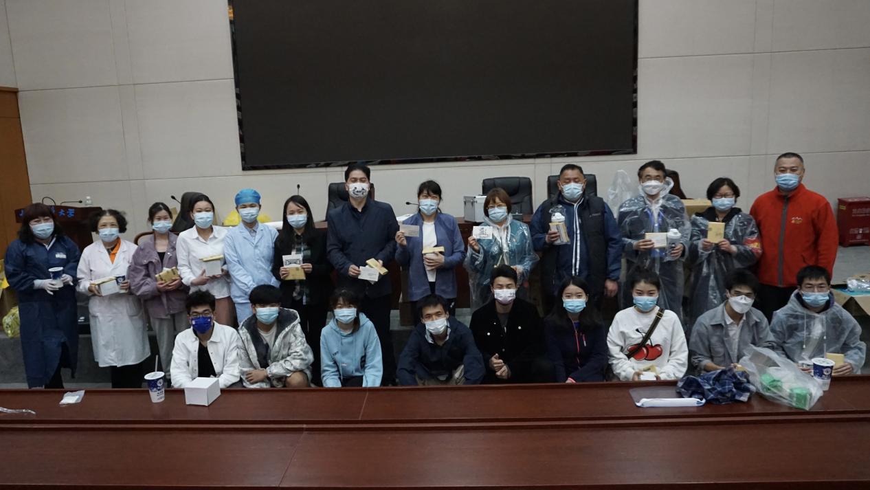 4月26日和28日下午,在艺媒学院党委副书记边建华老师和外国语学院党委副书记胡文勤老师的带领下,我校大学生创新创业团队“地心引力”的十几名成员在核酸检测即将结束之际,给北区及东区的医护人员和志愿者、保安师傅们送上地大同学们手写的感恩贺卡、100余套的地大特色文创产品以及奶茶饮品,向他们表达了一份敬意和感激。在天气湿热和风雨交加的天气环境下,地心引力团队希望这个小举动能让他们感受到地大学子的温暖和情怀。