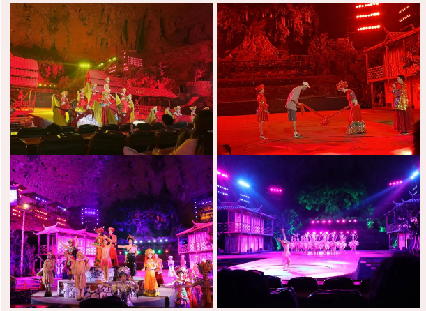 除此之外,腾龙洞里还有大型的激光秀以及土家传统歌舞表演。变幻万千的激光秀,在几百万年形成自然洞穴中,运用高科技,让虚与实、情与景完美融合,讲述一个醉美的土家传说,呈现出美轮美奂的视听体验。