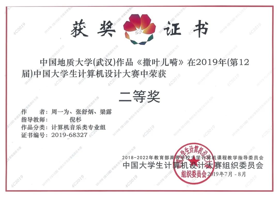 获得C音乐作品类三等奖