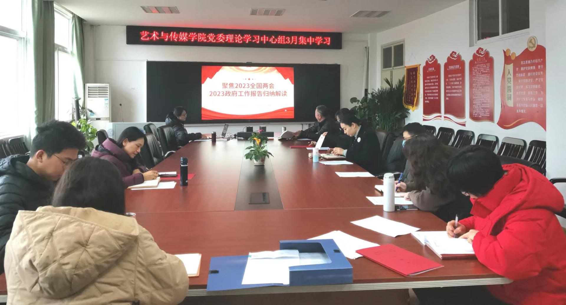 郭书记首先向全体中心组成员传达2023年全国“两会”精神,带领大家学习两会政府工作报告,重点传达了“两会”期间习近平总书记重要讲话精神和政府工作报告关于教育的工作部署。以此契机她继续带领大家学习习近平总书记关于教育重要论述讲义——坚持党对教育事业的全面领导。她强调,教育要坚持育人的根本在于立德,思想政治工作是学校各项工作的生命线,要善用“大思政课”铸魂育人,以中华优秀传统文化教育涵养历史自信和文化自信,充分发挥学院艺术学科特色,真正把青少年培养成拥有四个自信的孩子,成为德智体美劳全面发展的社会主义建设者和接班人。