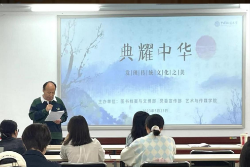 2023年5月23日,学院在南望山校区先后举办了2场学术交流,一是《典耀中华-发现传统文化之美》,主讲人是知名纪录片导演海金星,他的作品主要涉及历史、社会和自然,代表作有《千古风流人物》《城市24小时》等,多次获国际国内纪录片大奖。他从自身的创作体验和代表出品出发,分享了影像艺术在传播传统文化中故事化的视觉呈现和场景设计。