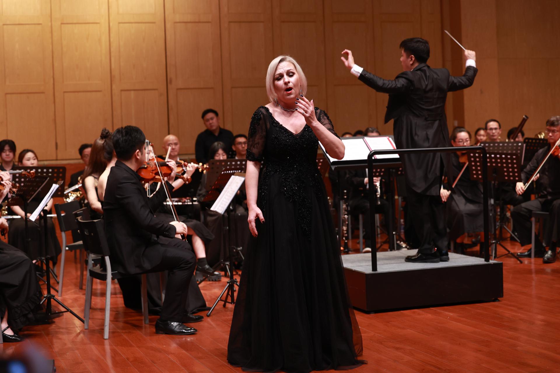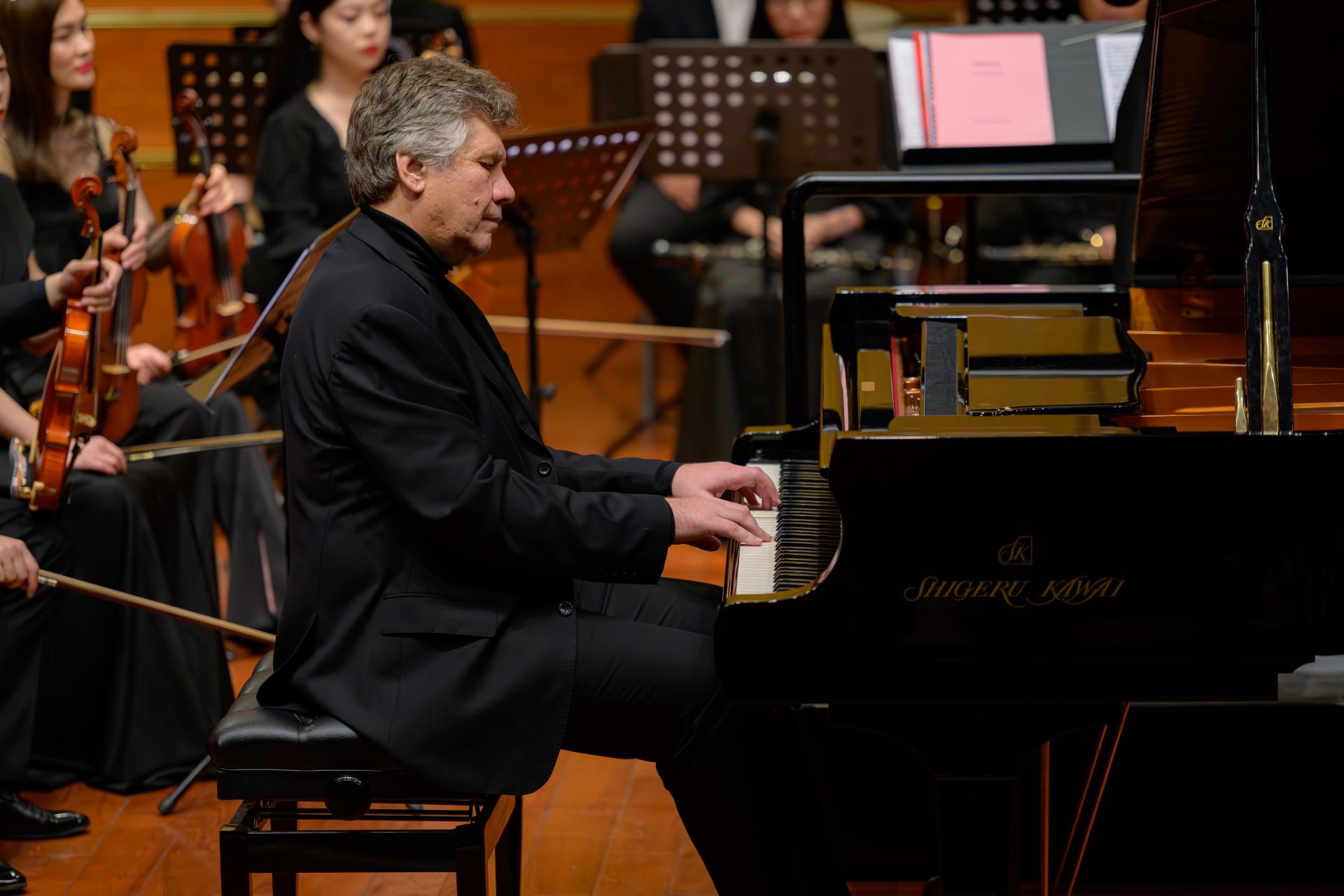 我校特邀俄罗斯艺术科学院院士——来自莫斯科国立柴可夫斯基音乐学院的尤里·迪登迪(Yuri Didenko)教授和叶卡捷琳娜·斯古斯尼琴科(Ekaterina Skusnichenko)教授呈现了《莫扎特第二十三钢琴协奏曲第二乐章》和普契尼歌剧选段之咏叹调《我亲爱的爸爸》,为校庆送来了万里之外的美好祝福。