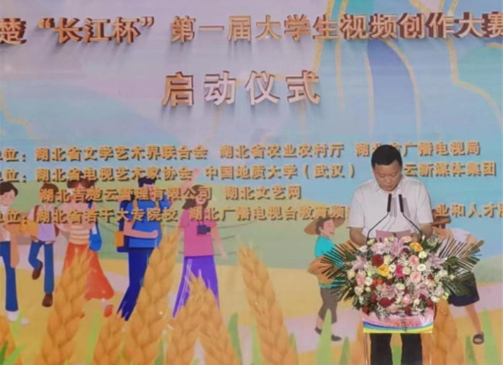 中国地质大学党委副书记王林清致欢迎辞,他谈到:“大学生们要紧跟时代发展步伐,用镜头记录中国,展示湖北改革发展之变;要以人民为中心,根据本次大赛的要求和主题,用有温度、有内涵、有深度的作品讲好荆楚故事;要将小我融入大我,树立服务国家、服务基层的志向,让青春在奉献中绽放绚丽之花!”