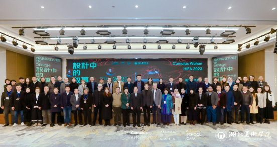 2023年11月27日上午09:30,2023 国际艺术与设计院校联盟Cumulus武汉(湖北美术学院“设计中的叙事”平行会议)开幕式在武汉市武昌区中山路293号桃花岭大酒店四楼桃花源一厅举行,我院院长何清俊教授受邀参加开幕式。出席开幕式的领导有湖北省人民代表大会常务委员会副主任杨云彦,湖北省教育厅体育卫生与艺术教育处二级调研员姜贵君。出席开幕式的专家有:全国设计专业学位研究生教育指导委员会副主任委员、清华大学美术学院杨东江教授,全国艺术专业学位研究生教育指导委员会秘书长、同济大学范圣玺教授,全国艺术专业学位研究生教育指导委员、苏州大学李海明教授,全国艺术专业学位研究生教育指导委员会委员、鲁迅美术学院副院长赵璐教授,全国设计专业学位研究生教育指导委员会委员、华中师范大学辛艺华教授,中国艺术人类学学会会长、中国艺术研究院方李莉教授,华中科技大学李保峰教授等,还有来自英国、奥地利、马来西亚、日本等国家的学者。湖北美术学院全体校领导,湖北美术学院各教学单位师生代表以及学术研究者百余人出席开幕式。开幕式由湖北美术学院党委副书记、院长周峰主持。