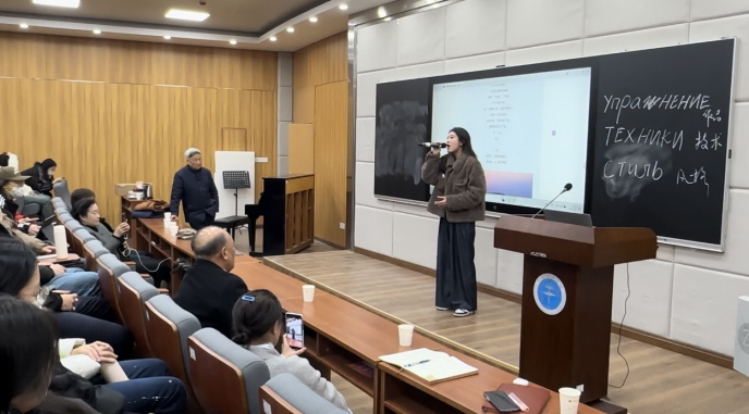 在讲述的同时,佟文西老师还向大家展示了《再唱山路十八弯》、《说得好,还要做得更好》等代表作品,并邀请老师同学们共同演唱《人民就是江山》等经典红歌,点燃了现场氛围。