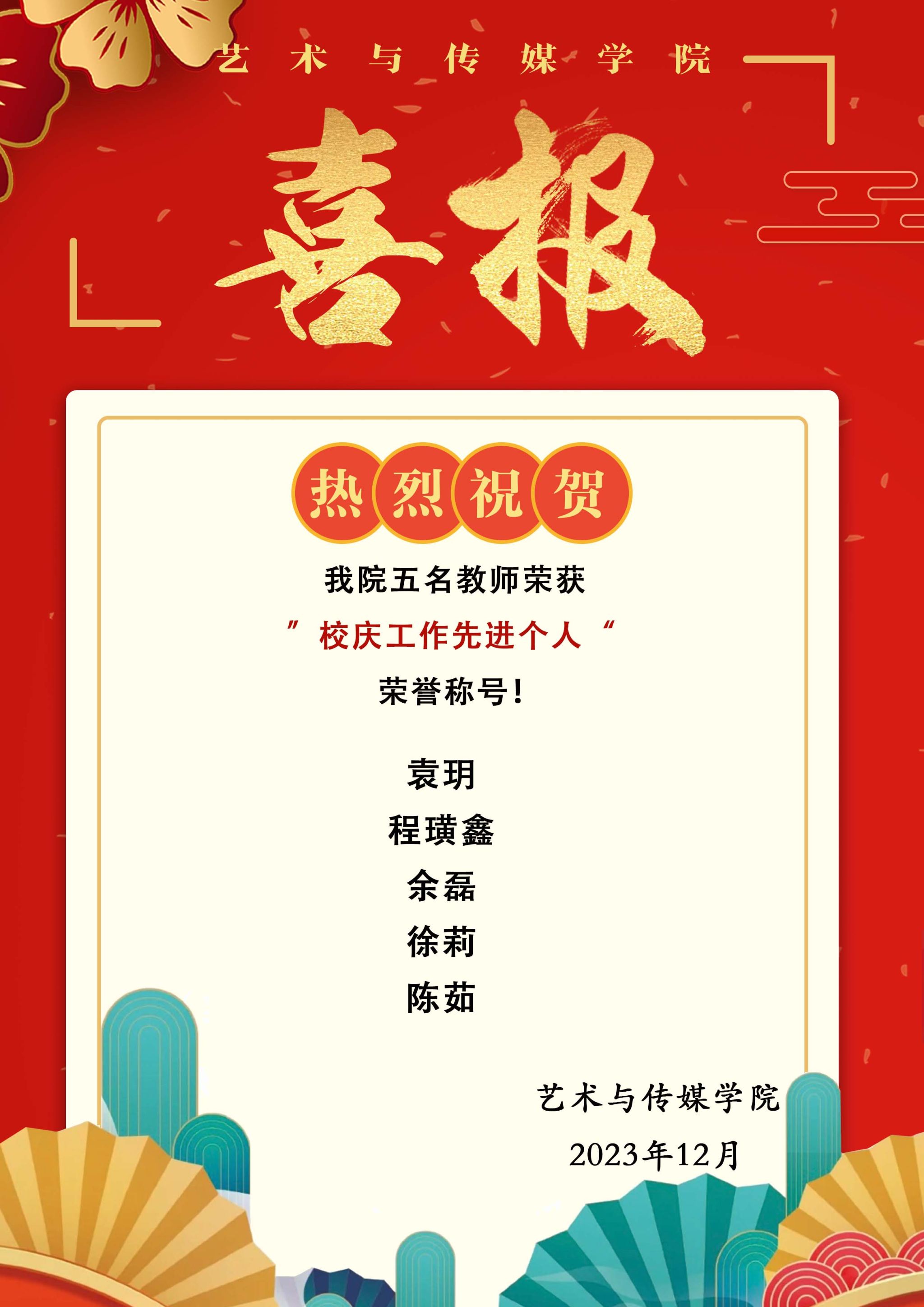 喜报 | 热烈祝贺我院五名教师荣获“校庆工作先进个人”荣誉称号!