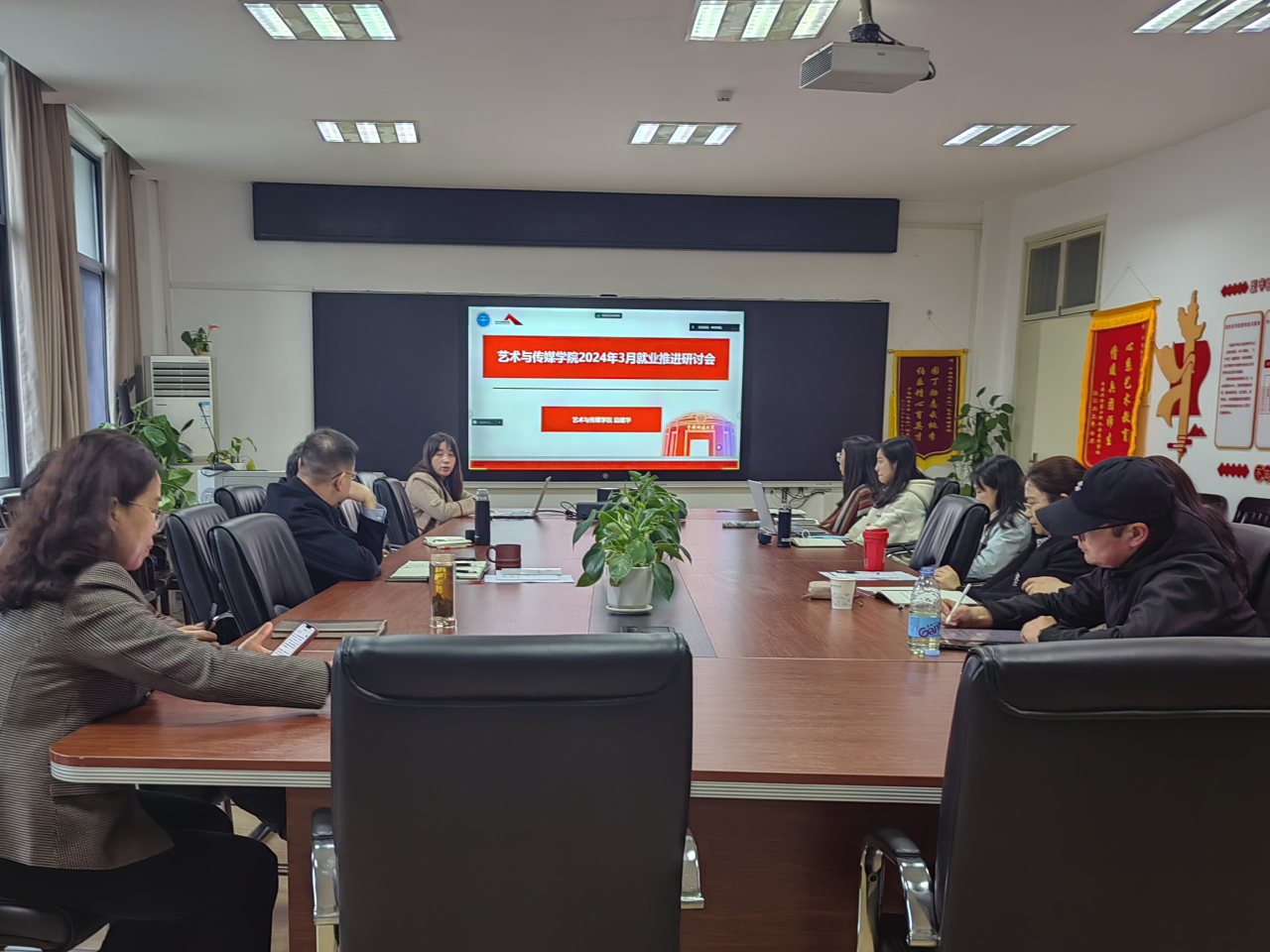 2024年3月27日下午14:30,亚洲第一黄色网站于艺媒楼1209组织召开2024年3月就业工作推进研讨会。学院领导班子、各系就业工作负责老师、专兼职辅导员出席本次会议,会议由学院辅导员单湉艺主持。