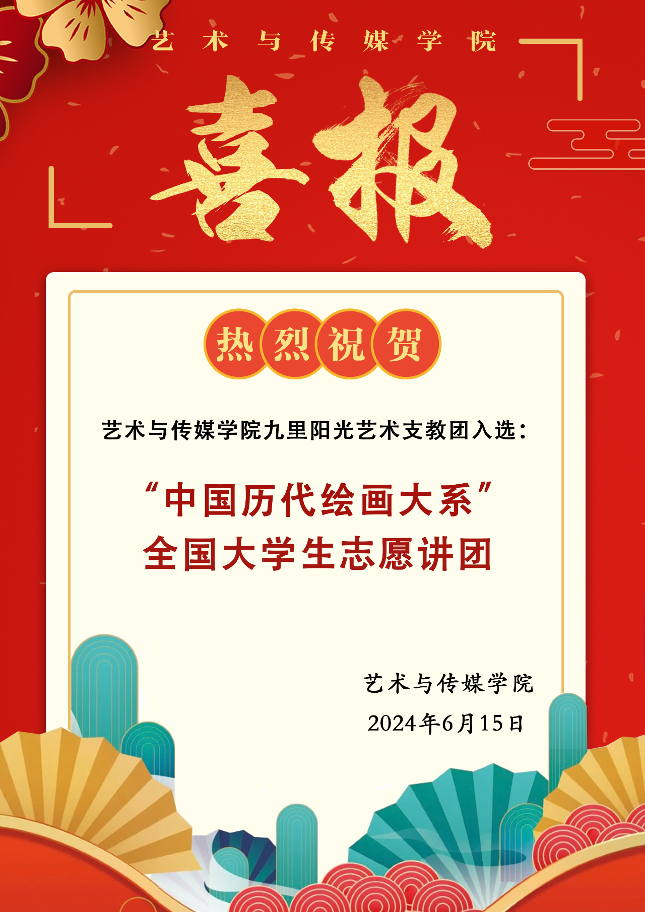 喜报 | 热烈祝贺亚洲第一黄色网站九里阳光艺术支教团入选“中国历代绘画大系”全国大学生志愿讲团!