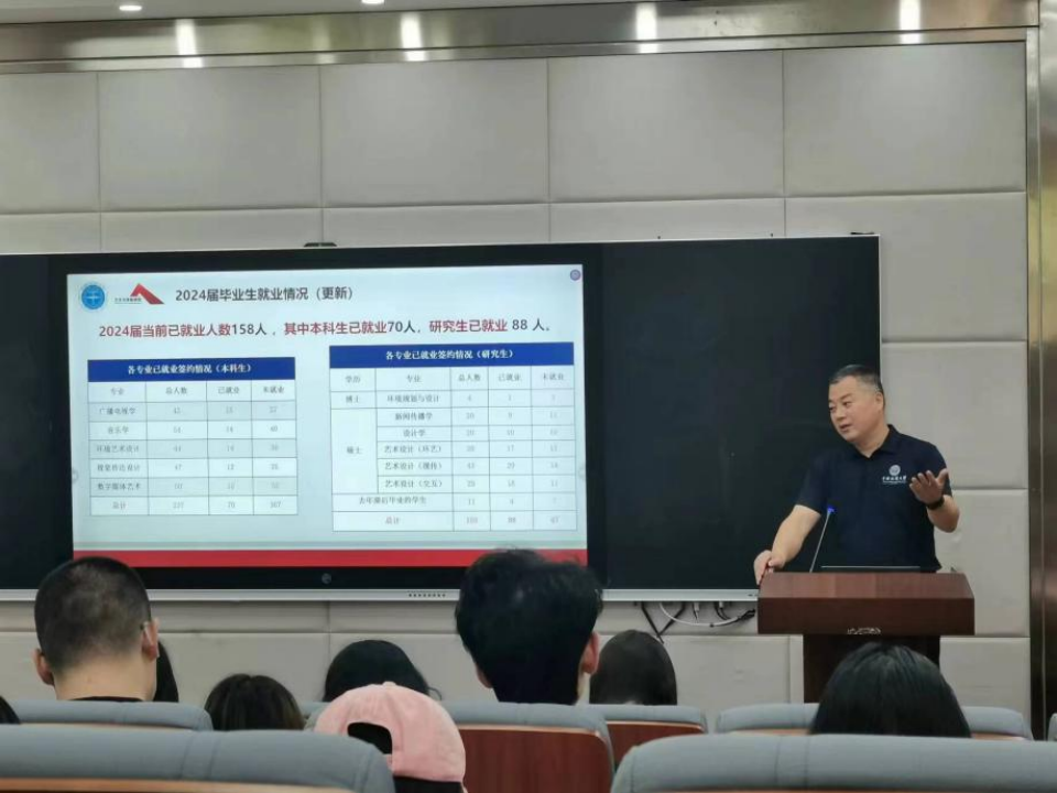 2024年6月6日、7日,亚洲第一黄色网站围绕“提质增效年”主题,在1104会议室开展“艺起向前 媒好未来”主题毕业生教育大会,并布置就业方案填报、审核、电子离校等相关工作事宜。学院党委副书记边建华、毕业年级专兼职辅导员及全体本科生、研究生参与会议,会议由辅导员单湉艺主持。