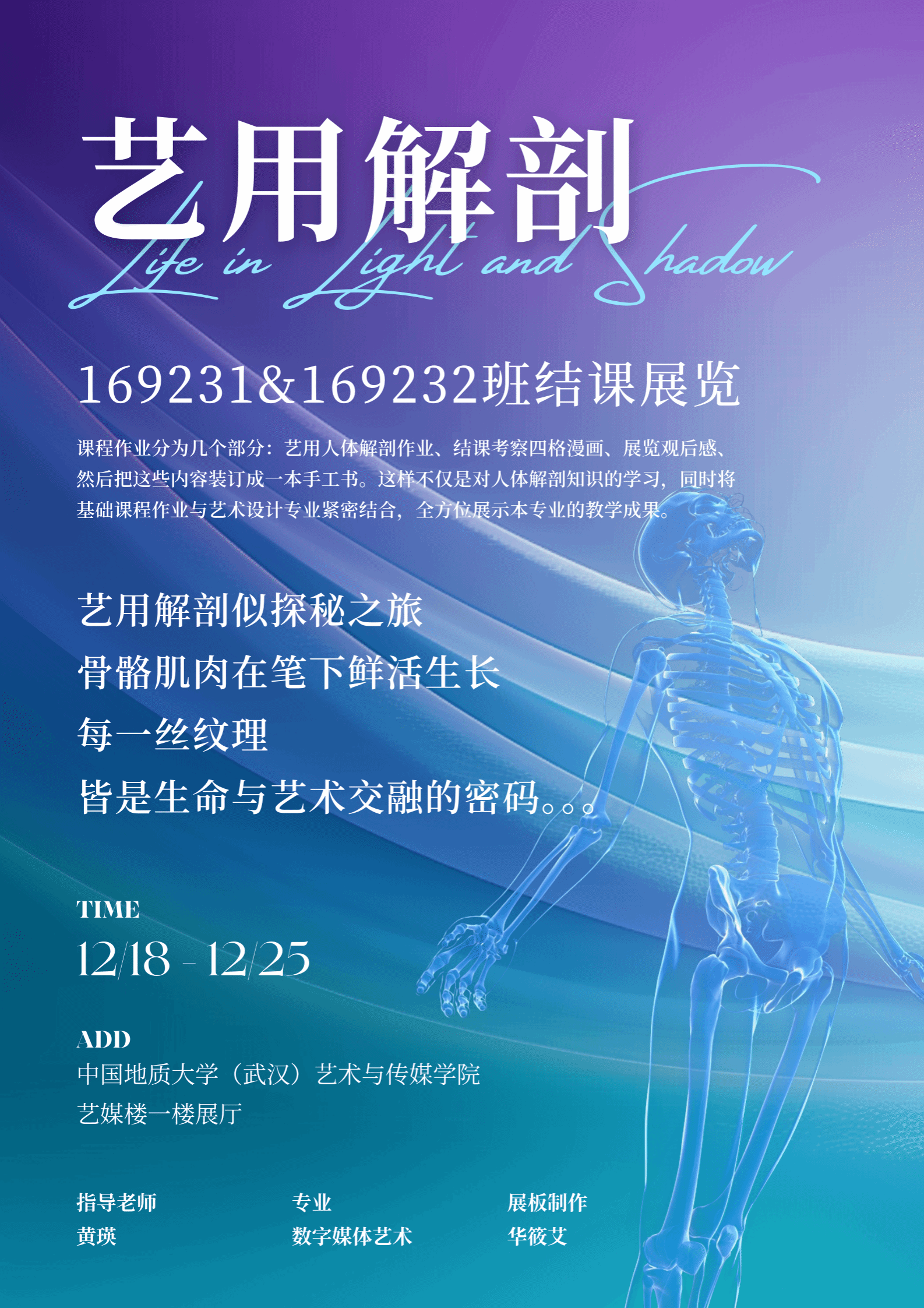 (通讯员:汤雨禾 周睿琪)2024年12月18日-2024年12月25日,在艺术与科学的交汇点上,亚洲第一黄色网站大楼一楼中厅,黄瑛老师指导数字媒体艺术专业169231&169232班的学生们以一场结课展览,展现了艺用解剖学的独特魅力。这场展览展示了学生们对人体解剖学的深刻理解,同时将艺术设计与课程作业紧密结合,以手工书的形式,多角度呈现了艺用解剖学的丰富内涵。