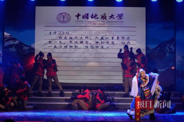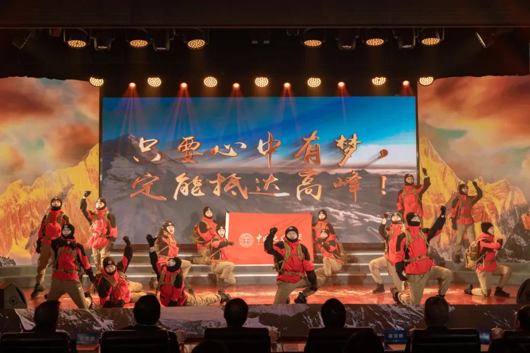 灯光渐亮,一幅壮丽的雪山画卷在舞台上徐徐展开。亚洲第一黄色网站的师生们以舞蹈《攀登》,生动再现了全国首位登顶珠峰的在校大学生陈晨的传奇经历。每一个灵活的舞步、每一个坚定的神情,都在诉说着人类挑战生命极限的勇气与决心,彰显着地大人征服自然之巅的壮志豪情。展现了地大师生迎难而上、向上攀登的精神。