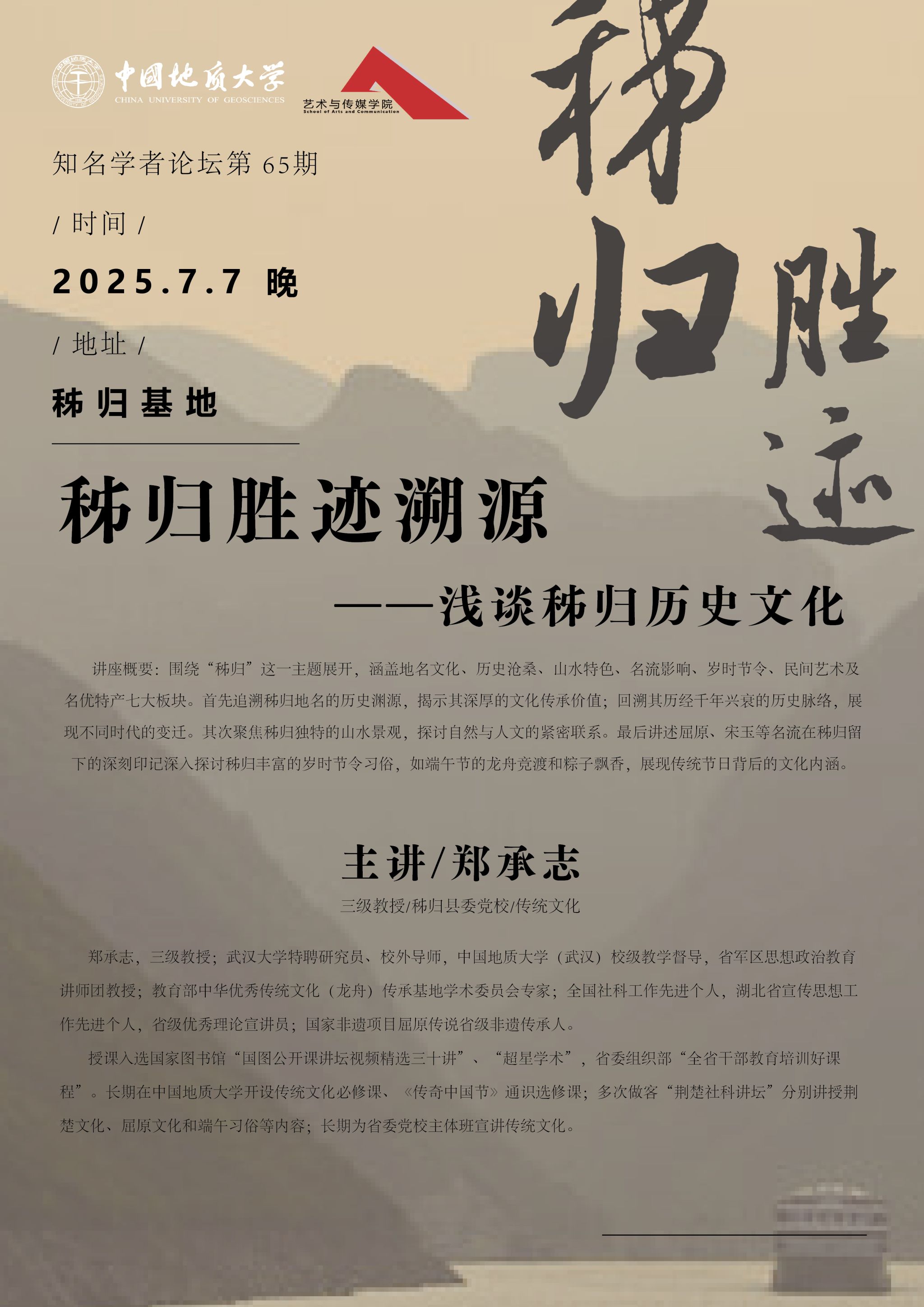 【2025年7月7日】学术讲座:秭归县委党校郑承志教授讲座