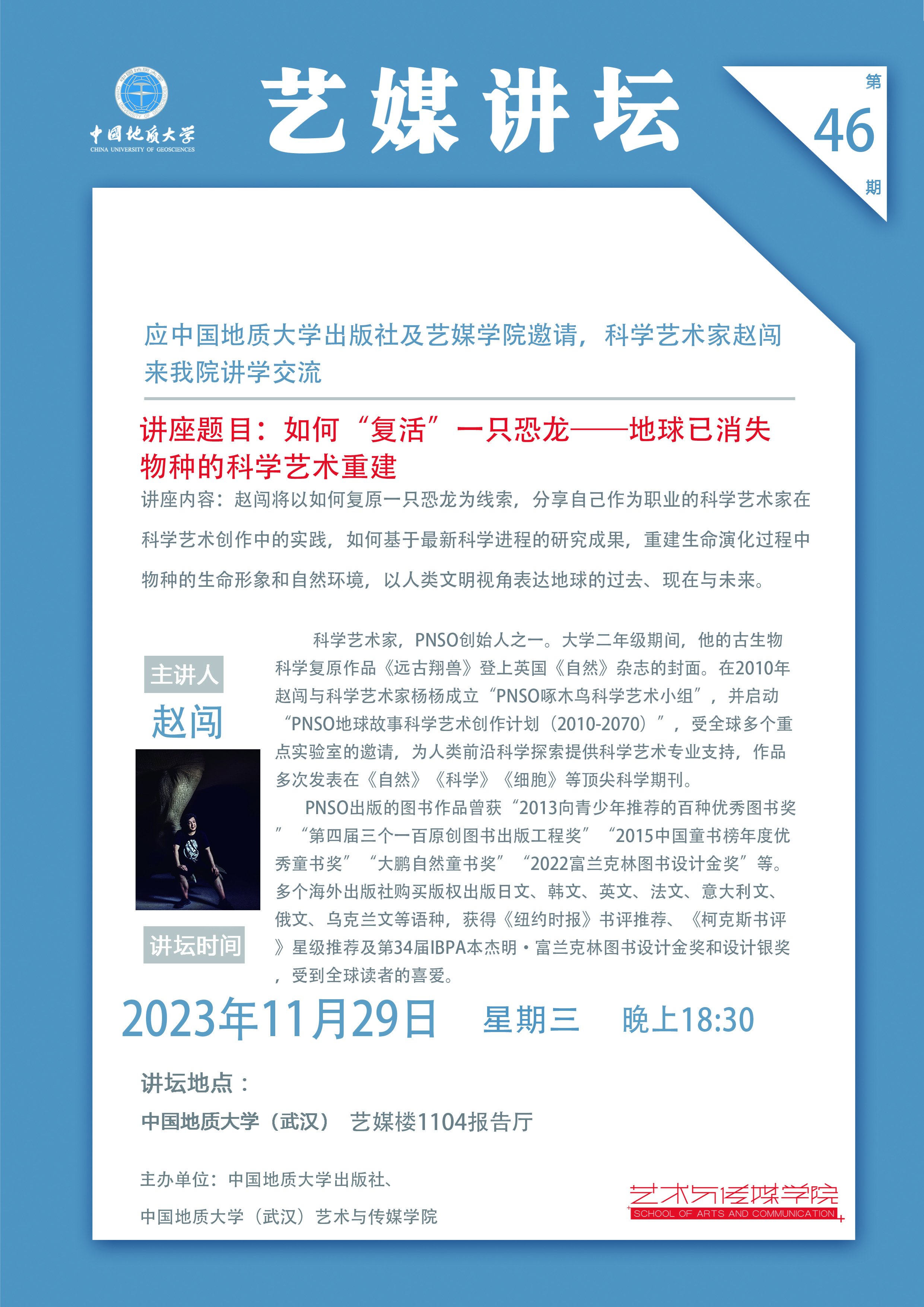 【2023年11月29日】学术讲座:应中国地质大学出版社及艺媒学院邀请,科学艺术家赵闯来我院讲学交流