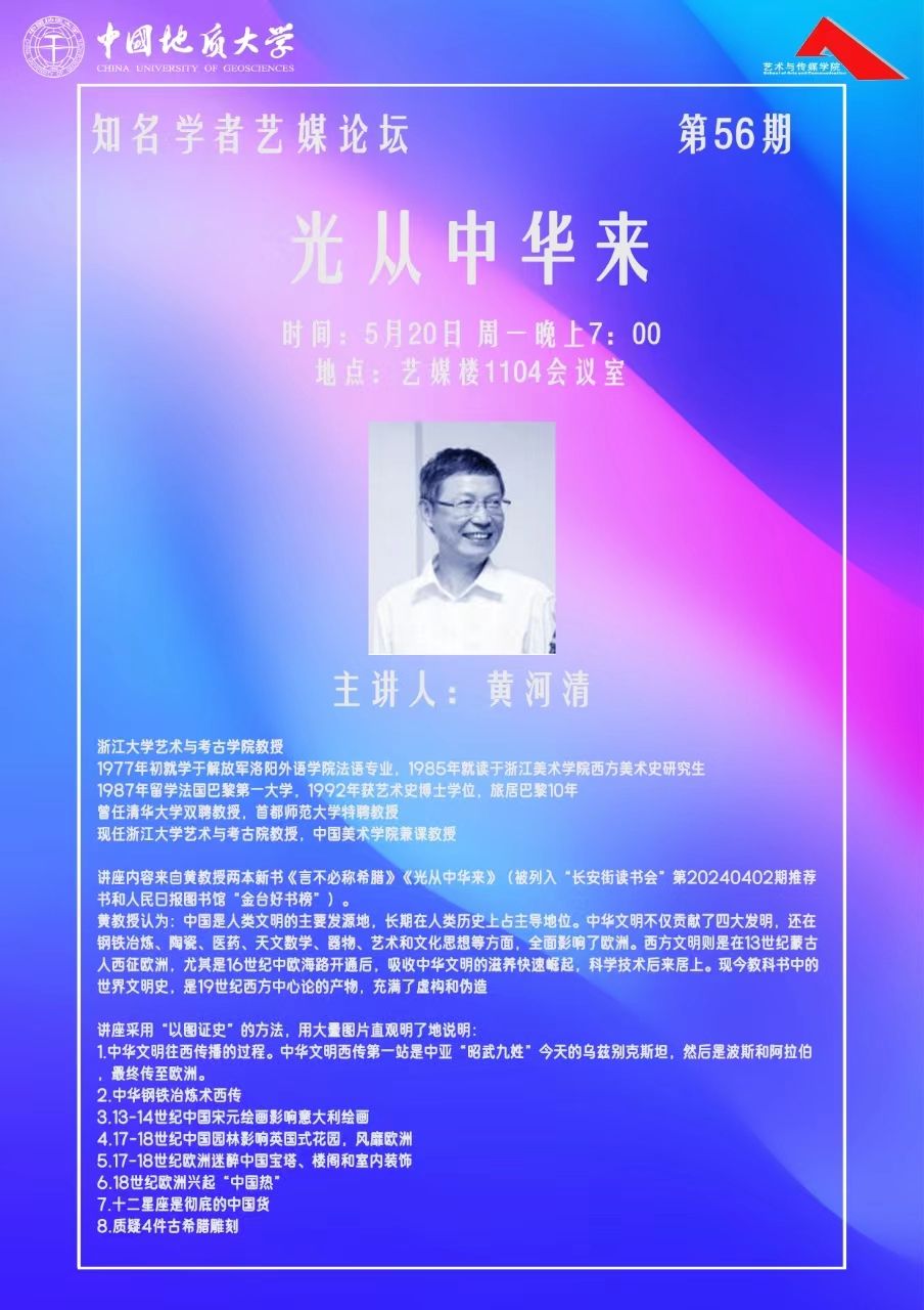 【2024年5月20日】知名学者讲坛:浙江大学艺术与考古学院黄河清教授讲座
