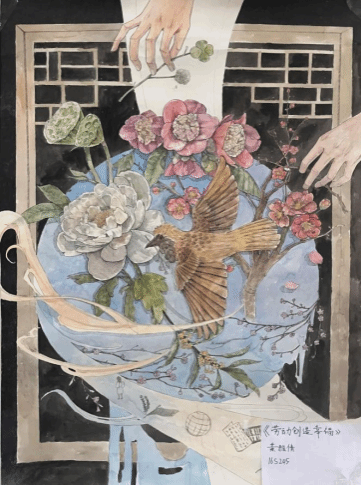 课程负责人黄瑛老师教学时注重挖掘学生特色与潜力,引导学生将抽象概念化为具象作品。《设计表现》课程不仅传授技能,更注重挖掘设计思维与创新能力,致力于培养学生艺术感知力与独特设计视角。