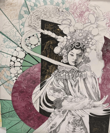 此次课程展览展出数十幅手绘作品,涵盖抽象、线条、奇幻等多元风格。同学们发挥创造力,运用丰富线条、多变色彩与多样材质,将传统美学和现代设计理念相融合,碰撞现实与奇幻想象,作品满溢青春活力,吸引众多师生观赏。