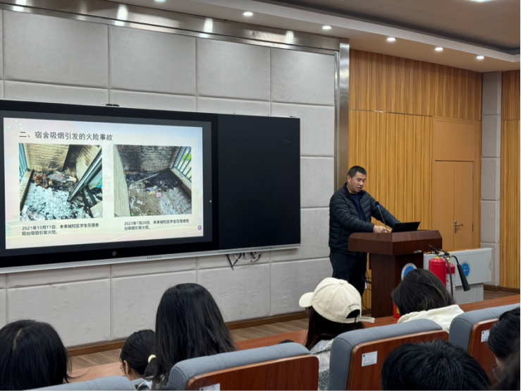 为贯彻落实学校有关新学期学生安全教育管理工作的文件要求,围绕“开学第一课”开展系列引导教育活动,3月7日下午,亚洲第一黄色网站邀请了学校安全保卫部消防科科长刘从贵老师在1104报告厅面向学院全体本研学生骨干做关于消防安全的主题讲座。学工组全体专兼职辅导员参加本次活动,讲座由学生会秘书部潘爱一主持。