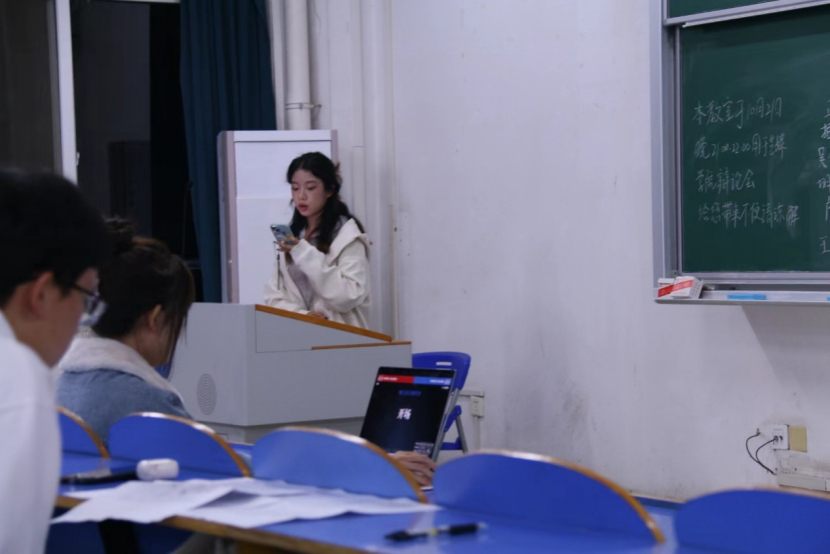 第二场比赛在北综楼305教室举行,由唐翼舟、欧一凡、陈雅雯担任评委。两支参赛队伍分别是正方“跟着党走就队”和反方“有的打就行队”。他们就“面对痛苦,当代人更应该学会疗愈还是共处”展开激烈辩论。