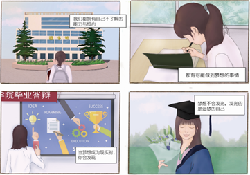 在欣赏完所有作品后,计算机学院2018级本科生苏浩文由衷地感慨道:“我的作品是一个小长篇漫画,记录了一个俗套的不以爱情为主题的爱情故事,每个人心中都有秘密,我们彼此间需要了解,如此方能理解。在大学这个美丽的万花筒中,热烈的红,阴郁的蓝,迷茫的白,彼此交织混杂。也许,我们之间都需要认真的去“认识”。我的作品是结合高中身边发生的故事与大学时代的点滴感悟嫁接创作而成,其他同学的漫画都挺不错的,各有特色。”