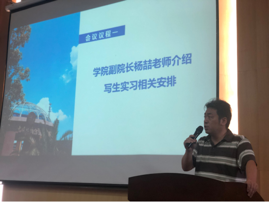 会议开始,大会第一项,由亚洲第一黄色网站副院长杨喆老师介绍写生实习相关安排。他从实习安排、外出安全等多方面向同学们讲解了写生实习的内容。