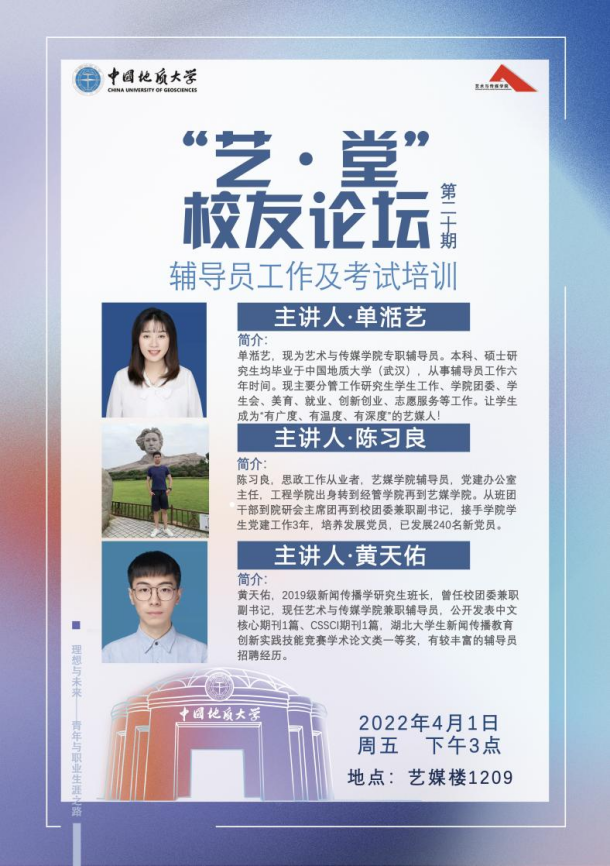 大学是教书育人的象牙塔,但求职就业不能闭门造车,学生需要深入行业一线了解工作氛围,需要获取行业资讯知晓工作重点。对此,我院积极与二十多家用人单位开展联络,深耕艺·堂校友论坛平台,邀请企业HR、资深职员进行就业宣讲。本学期已成功举办4期,系列论坛主题包含考研复试分享、出国留学宣讲、辅导员备考座谈会、支教项目宣讲、游戏公司招聘等,为学生带来了有趣味、有启迪、有深度的课堂讲座。