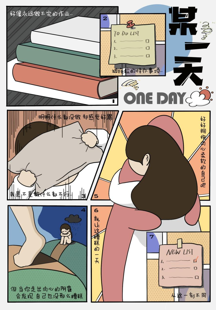 作品展现了一个普通大学生的一天,作者旨在表达不要因为一时的情绪失控而否定自己,应该多给予自己正向的鼓励,希望每个人都能积极乐观地面对学习、工作和生活。